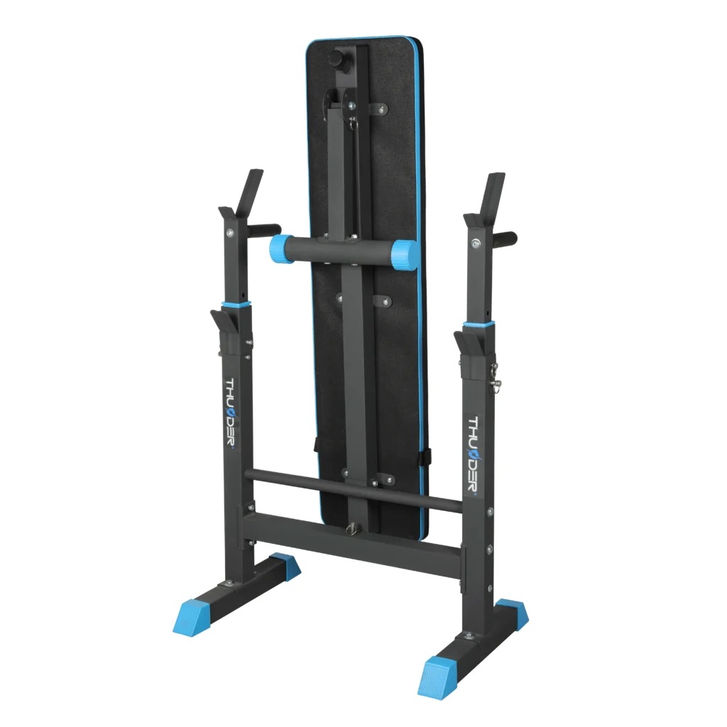 - Регульовані стійки: дозволяють відрегулювати висоту, необхідну для комфортного тренування.